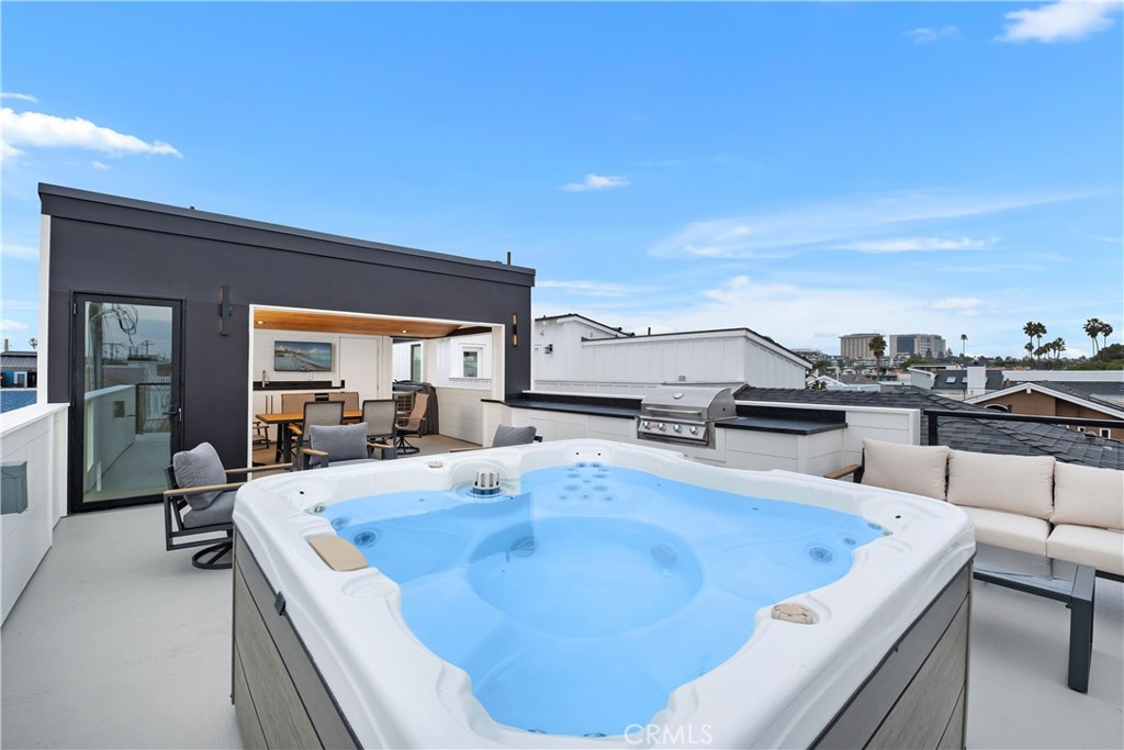 Rear Unit - 2 Beds | 2 Baths. With its private entrance, this unit lets everyone feel special. It features: An open kitchen and dining area with high-end finishes. Viking appliances and quartz countertops that politely whisper, "You deserve nice things". A private rooftop deck with dining area, outdoor kitchen, fire pit, and its own Jacuzzi--because why have one hot tub when you can have two?